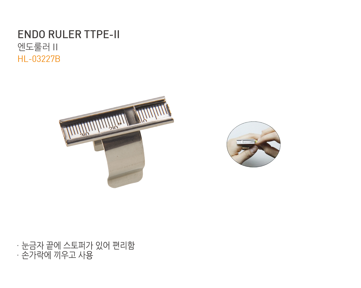 Ruler | Endo Ruler Type Ⅱ (엔도 룰러 2) Prev List Next 요약정보 제품용약정보 Categories Endo Instrument Code HL-03227B Description 스토퍼가 있어 편리. · Pack : 1 ea 본문 Endo Ruler Type Ⅱ (엔도 룰러 2) Prev Next List